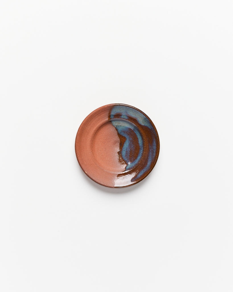 assiette bleu brun petite terracotta